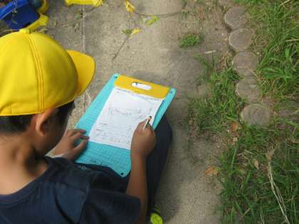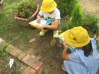 前回の授業で,中庭に動物(虫)たちが集まっていることに気づいた子ども達。