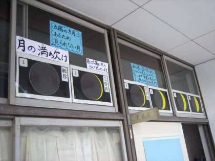 北校舎1階廊下に「月の満ち欠け」についての掲示物が貼られました。