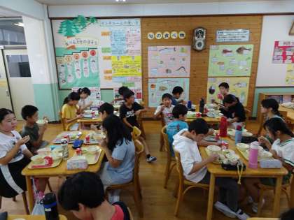 今日は6−2がランチルームで食べました。おかずもしっかり食べきってくれました!