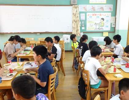 今日は6−1がランチルームで給食を食べました。
