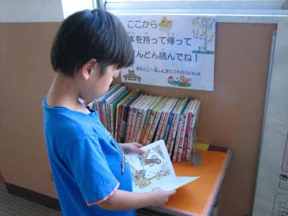 『読めたらまた戻しておいてくれたらいいから,どんどん持って帰ってね。』