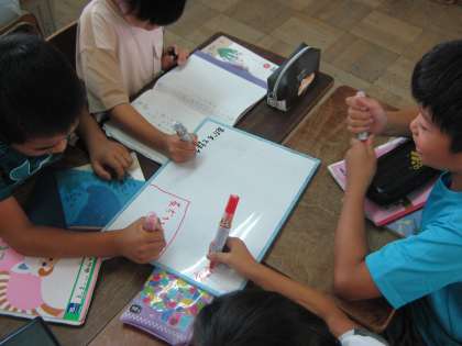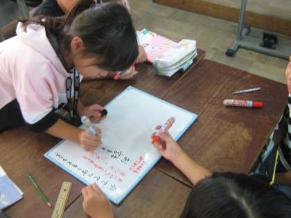 同じ楽しみをもつ子ども達同士で集まって,ホワイトボードに楽しみを詳しく書きました。一枚のホワイトボードに,いろんな楽しみが集まって,新しい発見もありました。