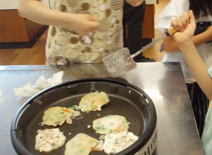 道徳科で韓国・朝鮮の文化について学びました。「日本と似たような遊びがあるね。」「この食べ物知ってるよ。」など,資料を見ながらたくさん発言をする児童の姿がありました。学習の後半には,家庭科室で実際にチヂミを作りました。「お好み焼きみたいだね。」「美味しいね。」など,直接関わることで,韓国・朝鮮について学ぶことができました。