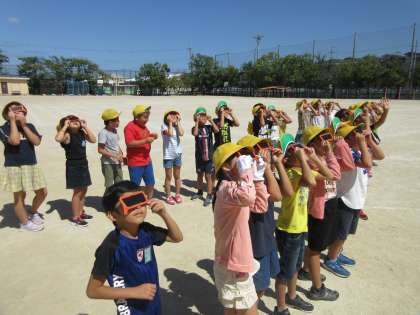 遮光板を使って太陽を見るとみんなから歓声があがっていました。