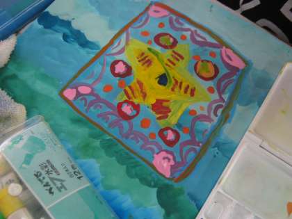 それぞれの子どもたちは自分だけのミステリーサークルをどのような色にするか,一つ一つこだわって色を塗っていました。