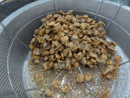 下味をつけたいわしの切り身を油であげました。下味がしみこんでいて,サクサクの食感が楽しめます。