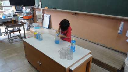 算数科ではおおきさくらべの中のかさくらべを行いました。