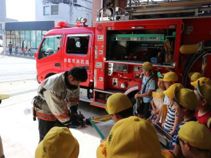 社会の「火事からくらしを守る」の学習で神川消防出張所へ社会見学に行きました。