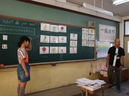 外国語活動では,お気に入りのパフェを作るためにお店屋さんを開きました。