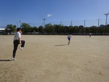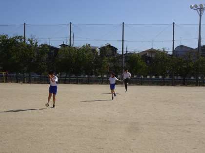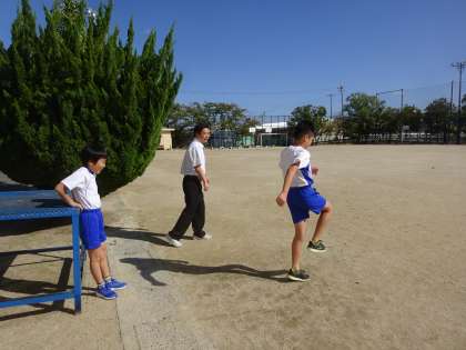 羽束師小学校の運動会は終わりましたが,ひまわり学級は次の育成合同運動会に向けて活動し始めています。今日は6年生児童が1時間目に走る練習をしていました。すると,その様子を見ていた教務主任の先生が,急遽陸上のコーチについてくださることになりました。「スキップをするように。」「太ももを上にあげるんだよ。」など,臨時コーチのアドバイスを受けて早速練習をしてみました。「難しいな。」「普通に走るよりしんどいね。」「速くなった気がする。」などの言葉とともに,ひまわり学級外の先生との関わりを受けて,新鮮な表情を見せていたのが印象的でした。このように,羽束師小学校では担任外の先生方とも温かい関わりがあります。