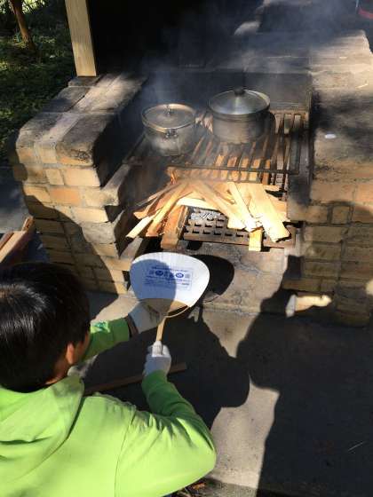 野菜を切ったり、火を起こしたり、みんなそれぞれの役割に全力で取り組んでいます。