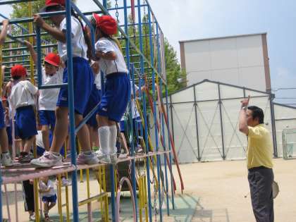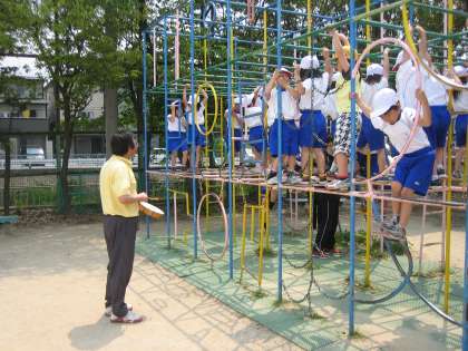 今日の授業の中で,遊具に触れる回数を重ねるごとに動きが活発になっていく子ども達。