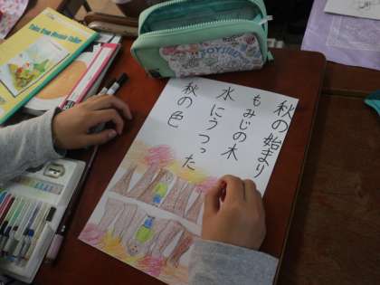 国語では秋の様子を短歌や俳句で表す学習をしました。