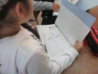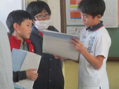 自分たちがインタビューした先生について,他の先生にインタビューした友達と紹介し合いました。普段お世話になっている先生の意外な一面を知って,喜んでいました。何とか英語で伝えることができた時の達成感は,授業を重ねるごとに大きくなっています。