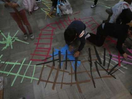 並べたり,上からつるしたりして楽しみました。