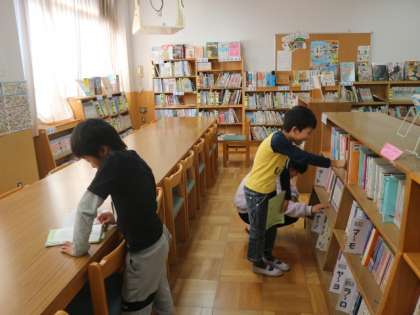 ステップタイムの時間を使って,週に1回図書館へ行くようにしています。