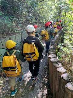 広場で,シャボン玉や,大なわ,鬼ごっこなどで遊びました。