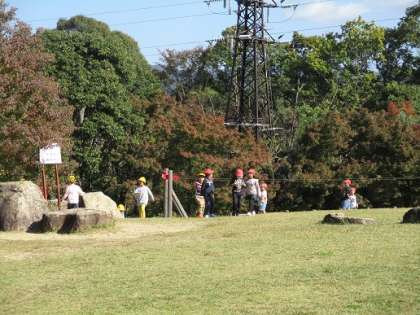 午前中の冒険の森での様子です。グループごとになかよくポイントを回っていました。