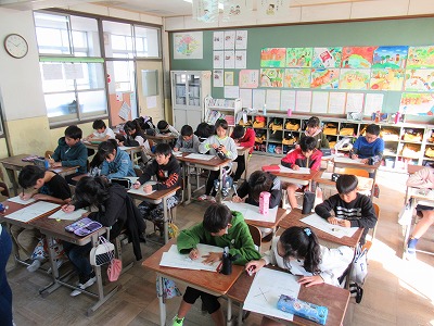 限られた時間内に集中して復習に取り組んだ子どもたち。学習の積み重ねを大切に,週に1度の復習タイムを続けていきたいと思います。