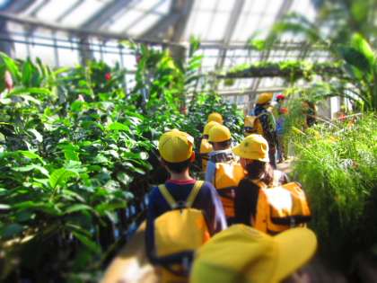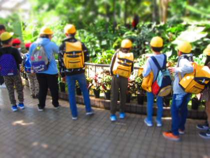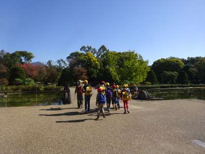 遠足で京都府立植物園へ行きました。バスと電車を乗り継いで行きました。道中,乗車のマナーをしっかり守ることができました。植物園に着いてからは,グループに分かれてオリエンテーリングです。「次はどこに行こうかな。」「地図を見てみるね。」「噴水はどこにあるのかな。」など,高学年児童が中心になって,課題に取り組む姿がありました。オリエンテーリングの後はお弁当を食べて,芝生広場で活動をしました。お天気にも恵まれ,大変充実した1日を過ごすことができました。