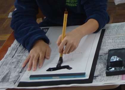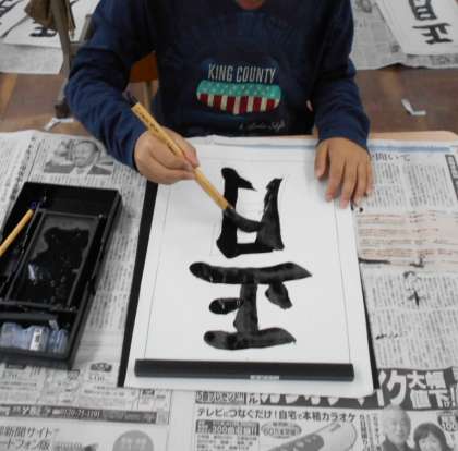 書写の時間に,書き初めをしました。少し気は早いですが,「正月」の文字に挑戦です。なぞり書きをしっかりしてから,本番の紙に書きます。「緊張するね。」「たくさんなぞり書きをしたから大丈夫だよ。」「どの字が一番上手に書けたかな。」など,一生懸命取り組むことができました。