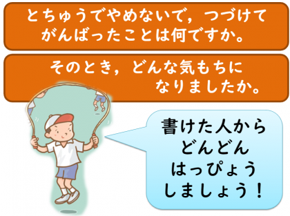 「自分ならこんな気持ち。」と主人公の頑張る心について多くの考えを出す姿が見られました。