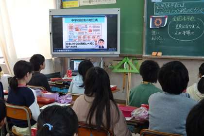 今日,6年生は中学校給食を食べました。