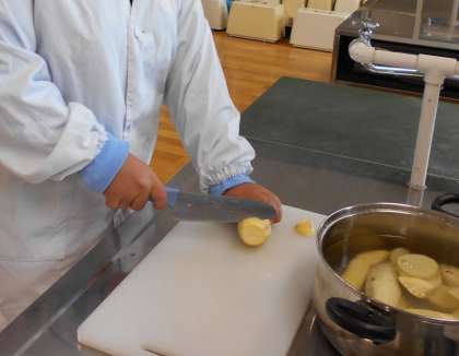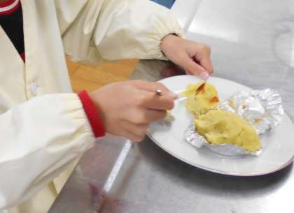 ひまわり畑で収穫したさつまいもを使って,スイートポテトを作りました。ピーラーで皮を剥く,包丁でさつまいもを切るなど,みんなで協力・手分けして調理をすることができました。「甘いね。」「美味しいね。」「もう食べちゃったよ。」など,たくさん感想を聞くことができました。