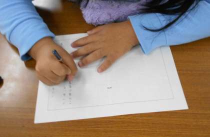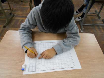 収穫したさつまいもで作ったスイートポテトの感想文を,国語科の時間に書きました。「水やり大変だったね。」「たくさんさつまいもが収穫できてうれしかったね。」「スイートポテトおいしかったよ。」など,自分のおもいをがんばって文章に表わそうとする姿が印象的でした。ひまわり学級では,教科を横断しての学習も盛んに行っています。