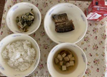 今日の献立は,ごはん・牛乳・開干さんまのからあげ・切干大根の煮びたし・すまし汁です。