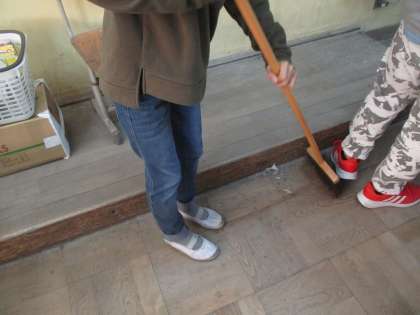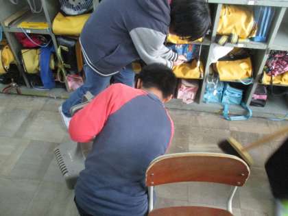 版画では,彫った木くずがたくさん落ちます。学習を終えてから,手分けして掃除をする姿,素晴らしいです。