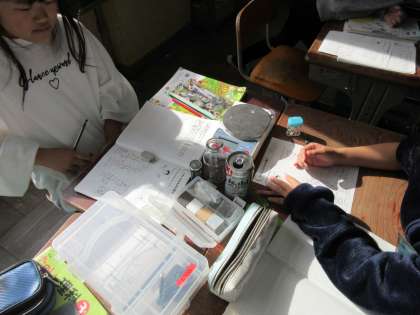 はかりの使い方を学習してから,ペットボトルや乾電池,ガラス瓶など普段身近にあるものを量りました。