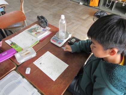 いろいろな違いを発見できたようで,楽しく計量していました。