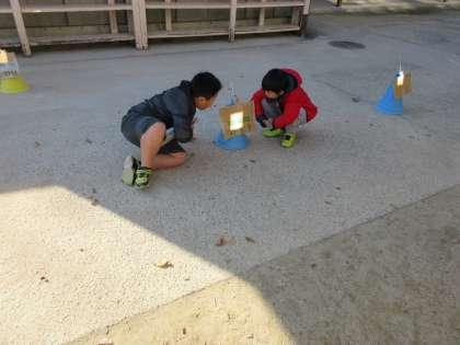 鏡で集めた光を重ねて暖かさが変わることや,光はまっすぐ進むという光の特性についても学ぶことができました。