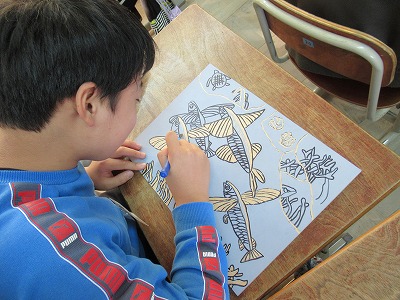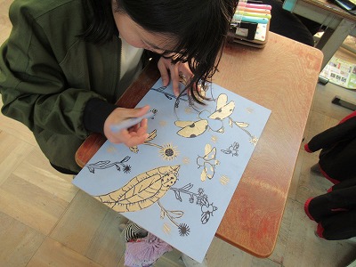 図画工作では,彩色木版画の制作を進めています。