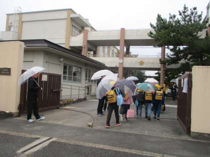 あいにくの雨でしたが,PTAの方や,地域の方,教職員のあいさつに「おはようございます。」と元気に答えていました。