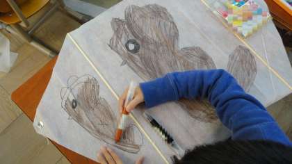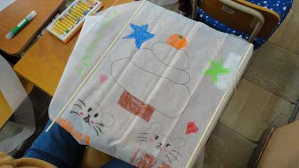 生活科でお正月遊びとして,凧揚げを楽しみました。
