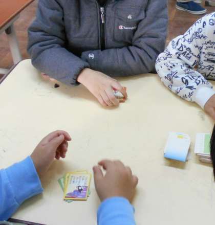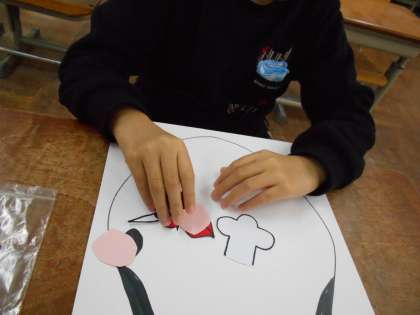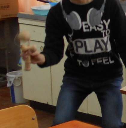 昔あそびを体験しました。「けん玉」「ぼうずめくり」「コマ回し」「ふくわらい」など,グループに分かれて遊びを体験しました。「コマが上手に回せたよ。」「ふくわらい,おもしろいね。」など,楽しそうな声がどの遊びからも聞こえました。