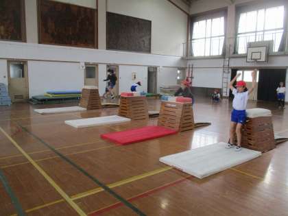 今年度初のとび箱運動の学習でした。開脚・閉脚とび,台上前転など,これまでにできていた技を思い出しながら取り組んでいました。今年度は,あおむけとび,頭はねとびにもチャレンジします。