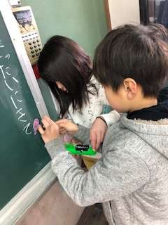 理科の学習では、豆電球を使って身の回りのもので明かりがつくのか調べました。前回の学習で、金属は電気を通すことを知りました。教室の中のかたいもの、光っているものなどいろいらなもので試していました。