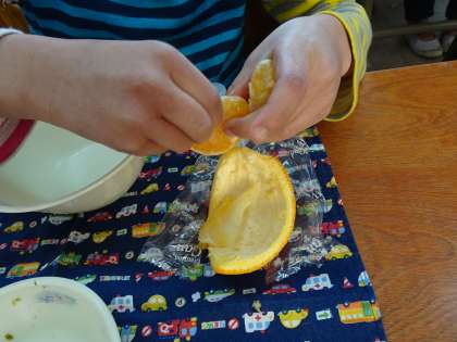 いよかんは,初めて食べる子もいましたが,食べ方の動画を見ながら,一生懸命食べている姿が見られました。