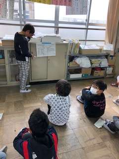 資料から分かったことや考えたことを分かりやすく友達に伝えました。「このグラフを見てください。」と間をあけながら、資料を指し示しながら発表することができました。