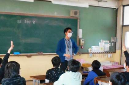先生が「○○が大好きです。みんなも好きですか」と質問や疑問を投げかけて,子どもたちとコミュニケーションしながら楽しい時間を過ごしました。先生のことを知る良い機会になりました。