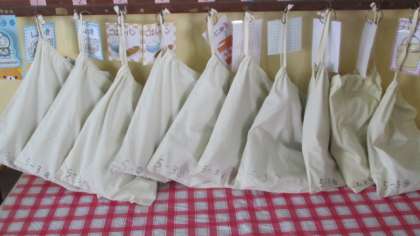 給食当番のエプロンを準備しました。このエプロンは,一セットずつ点検をし,不備があったものは直してくださっています。先生は,みんなに来てもらうエプロンを準備していたら,今にも着たくなってしまいました。おいしい給食をみんなで食べているところが頭に浮かんでしまいました。