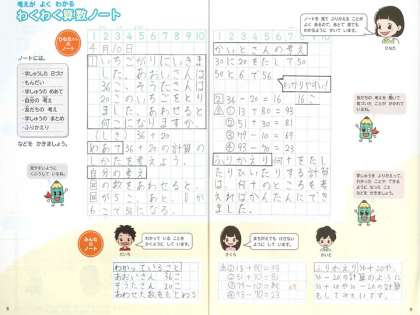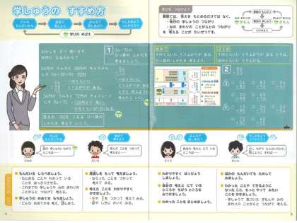 算数の教科書を開くと,「学しゅうのすすめ方」や「算数のノートの書き方」のれいがのっています。4月にわたしてある新しい教科書。お名前を書いたら,どんなことが書いてあるかなぁとぜひ手に取って中身を見てみてください☆