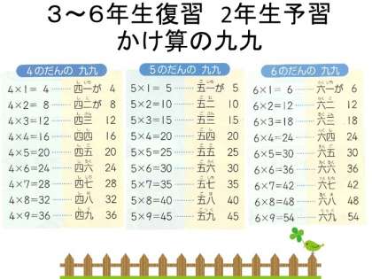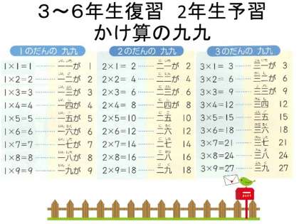 3年生から6年生のみなさんは,頭の体操で,ぜひ九九をとなえてみてください。
