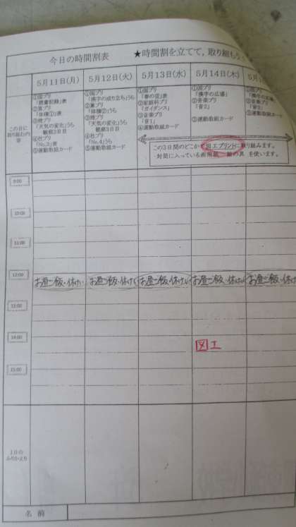 今回は,子どもたちが自分で予定をたてて学習を進めてほしいと思っています。