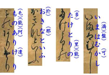 さっきの問題の2は,『かぐやひめ』の元のお話である『竹取物語』のはじめの部分です。現代の文に訳すと,「今からみれば昔の話ですが,竹取の翁(おじいさん)という人がいました」となります。ことばの使い方や文字の形など,長い時の中で人々が使いやすい形にかわってきています。みんなの身近な日本語にも,歴史があります。
