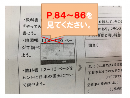 先日(5/1)配布しました社会の課題「自分で進める『学びの一歩』No.1」の地図帳のページが,新しい地図帳の表記になっておりましたので,ここで訂正させていただきます。