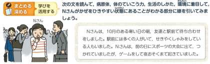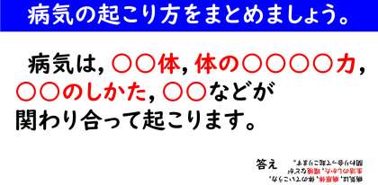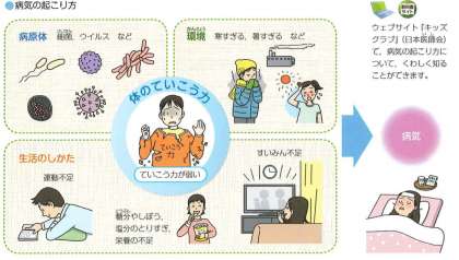 病気は,病原体,体のていこう力,生活のしかた,環境などが関わり合って起こります。